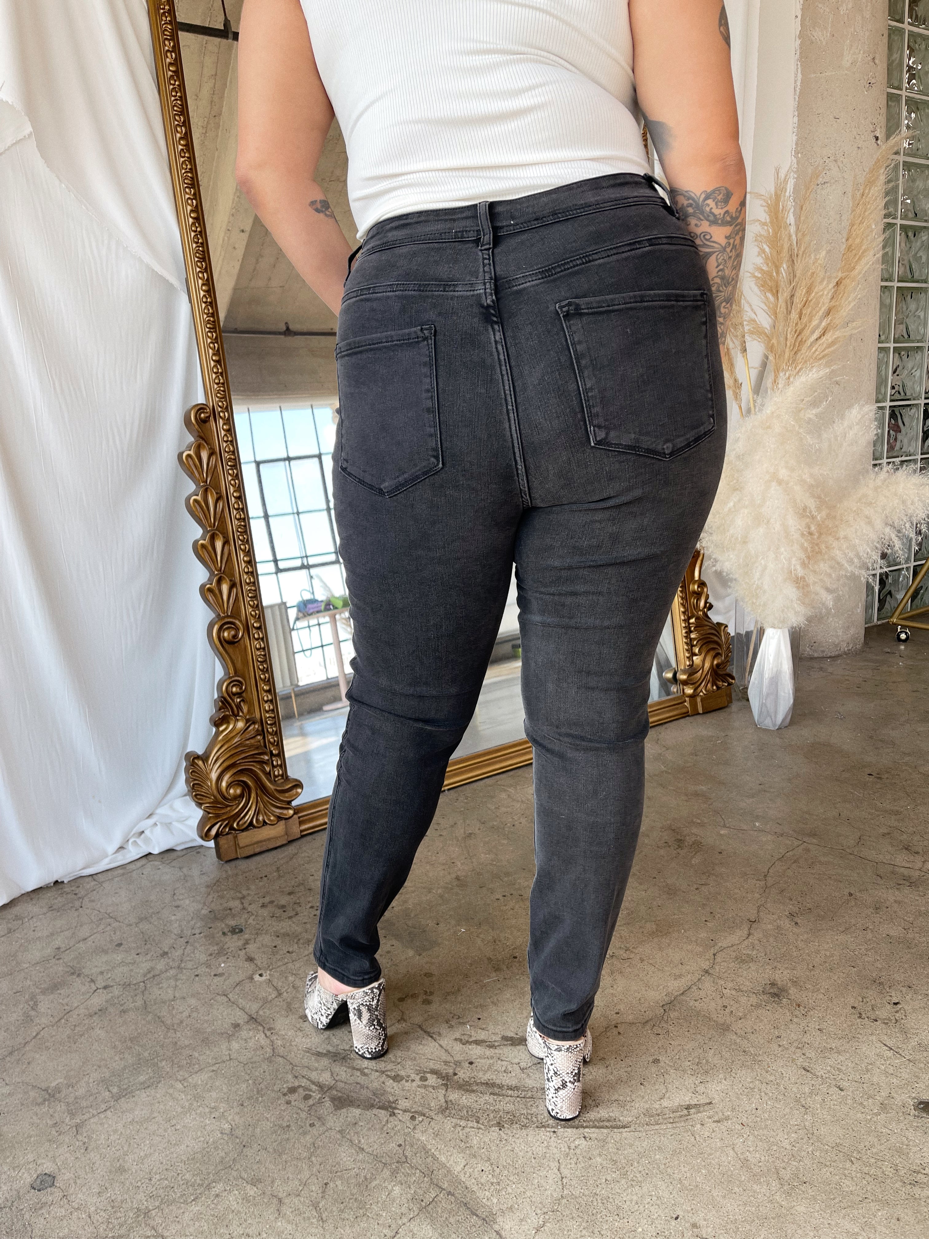 All new, High rise button fly ARI is perfect. Features comfort stretch denim, full length, High waisted and fitted. Truly a one of a kind pair, want to add some edge, check out TIA for some distress.