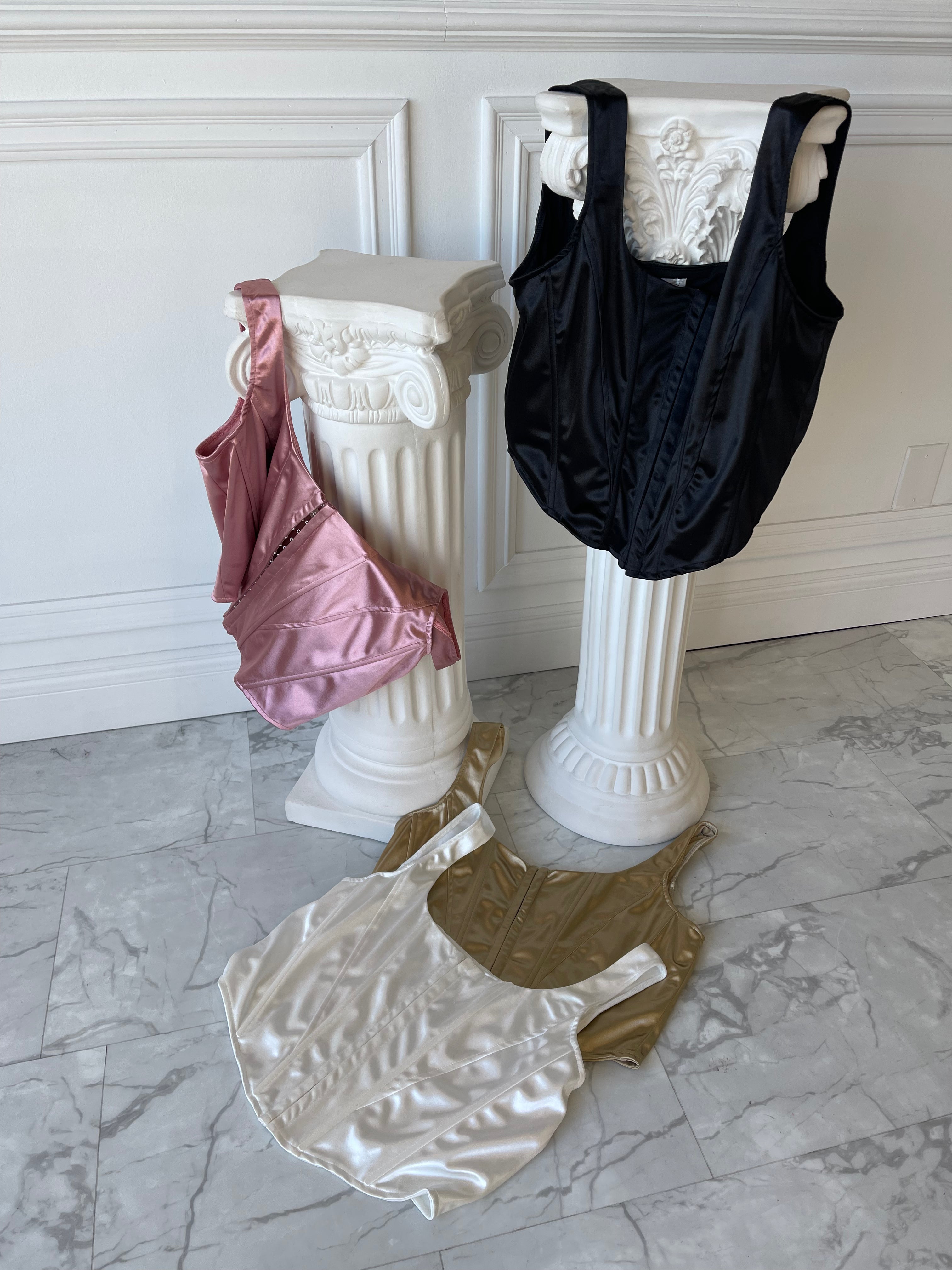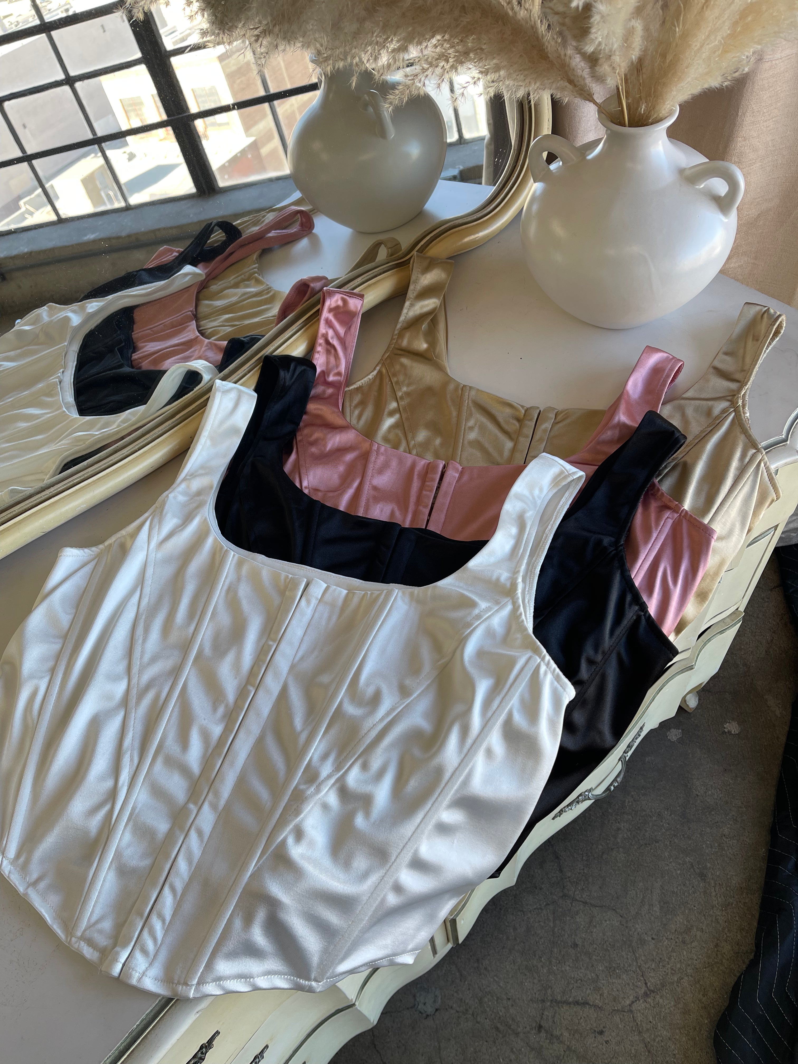 Meet GRACE, a new corset with satin finish with stretch. This corset style top is to die for! Hook eye closure and mild boning detail make it the perfect statement!