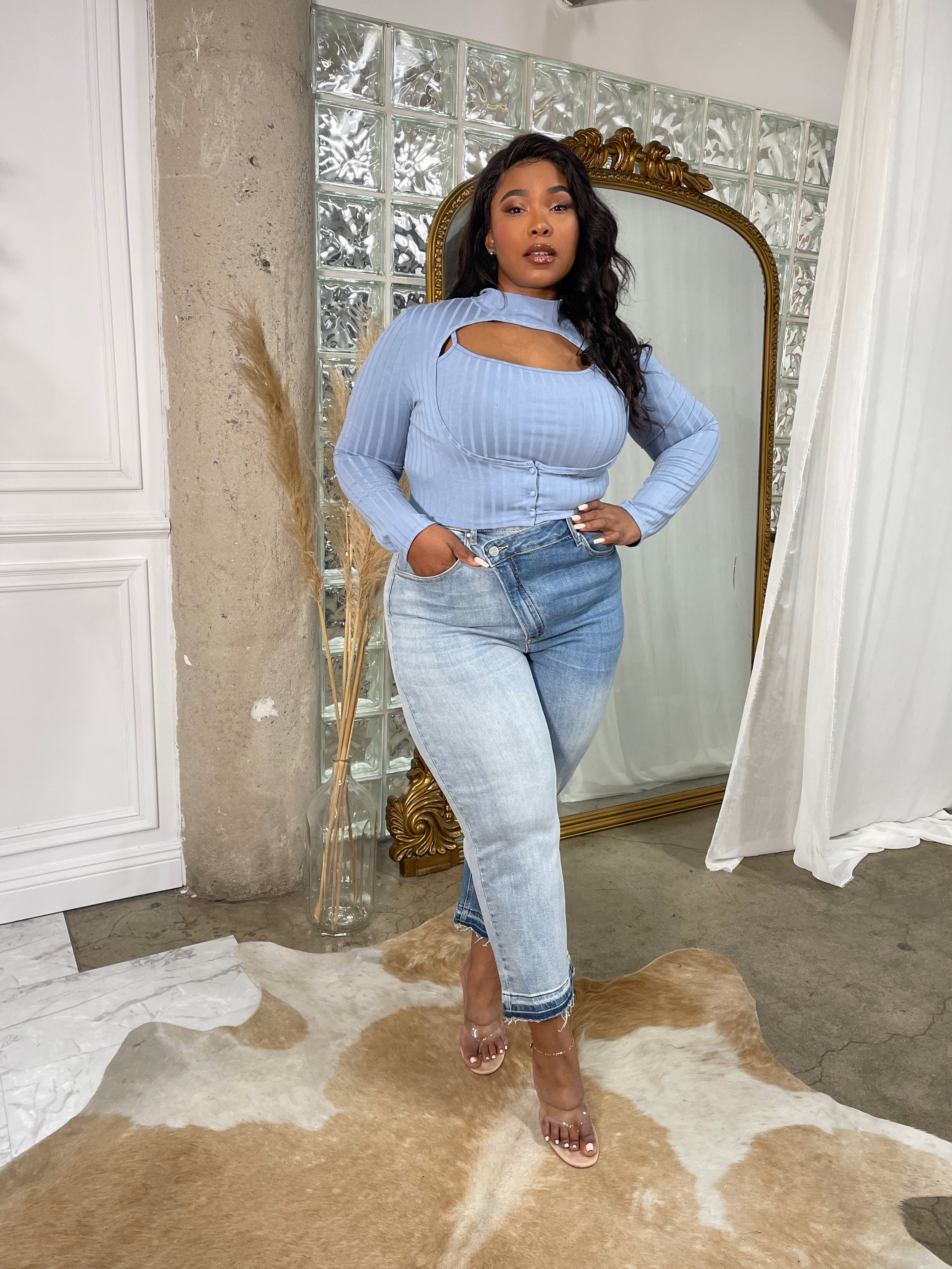 The all new KAYA is making a statement with the two tone detail. Features a cross over band, very stretchy and thick denim, frayed at the hem and a high waisted fit. True to size, pair them with a band tee and converse or a crop top and heels for date night!