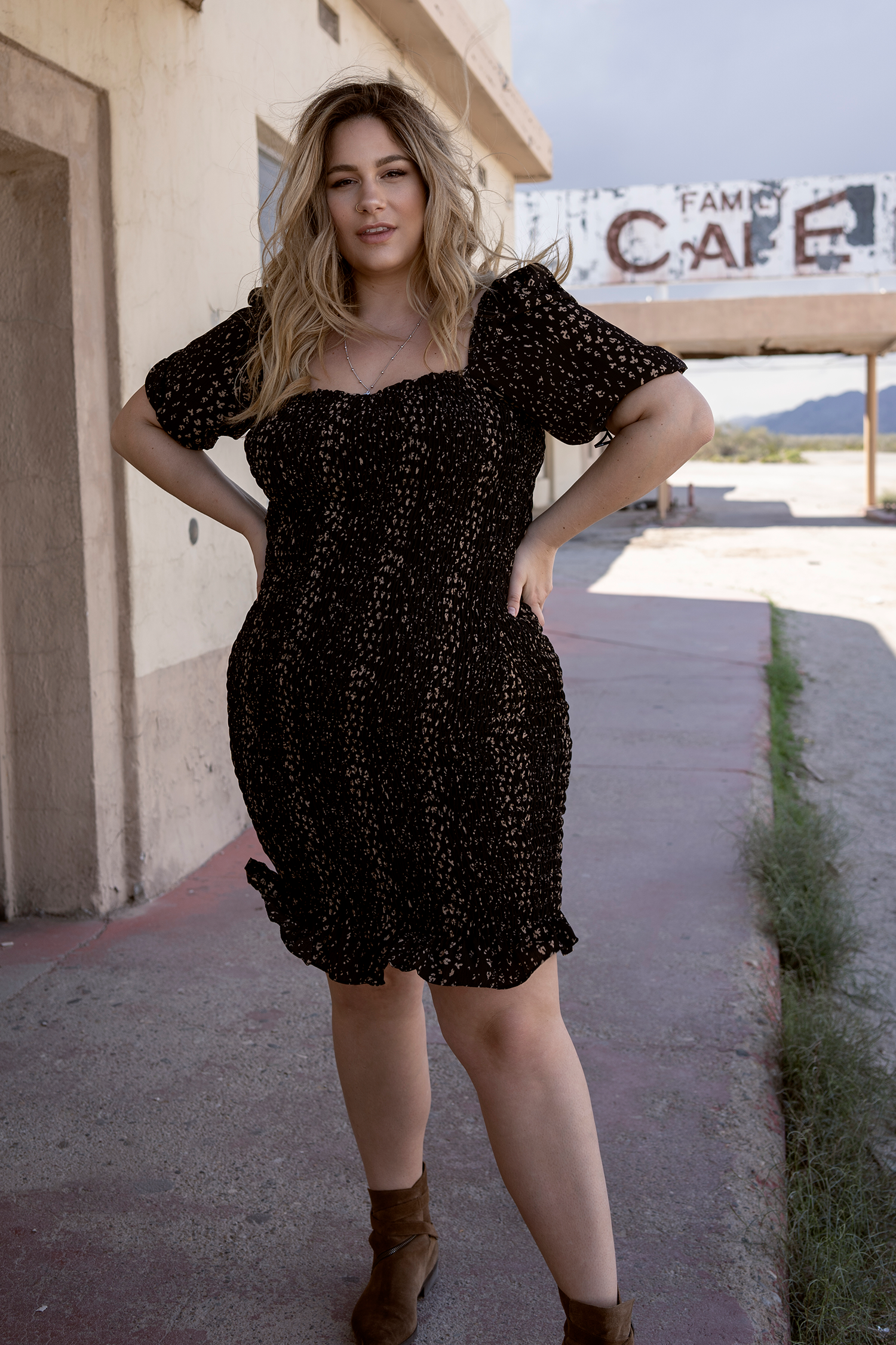 The RUMOR dress has a square neckline and a ruched bodice. Features a stretch bodycon fit, with a ruffle hem and a puff sleeve. Wear it with strappy sandals or booties, it's worth making plans for.