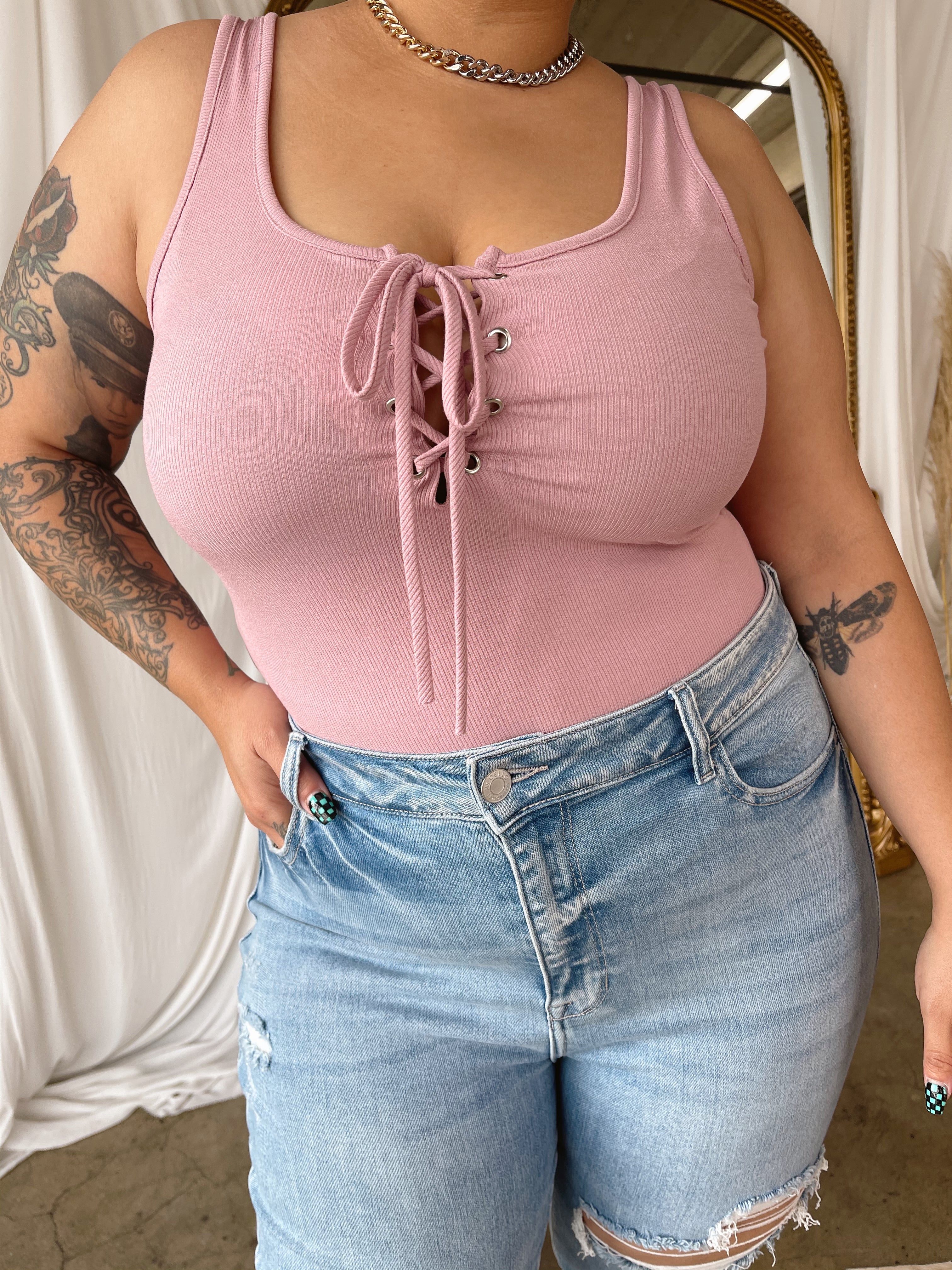 This Plus Sized Bodysuit is made of super soft ribbed cotton with a scoop neckline and a lace up front. Pair this with your fav jeans or skirt, it’s stretchy fabric and snap closure offers a comfort and style at the same time!