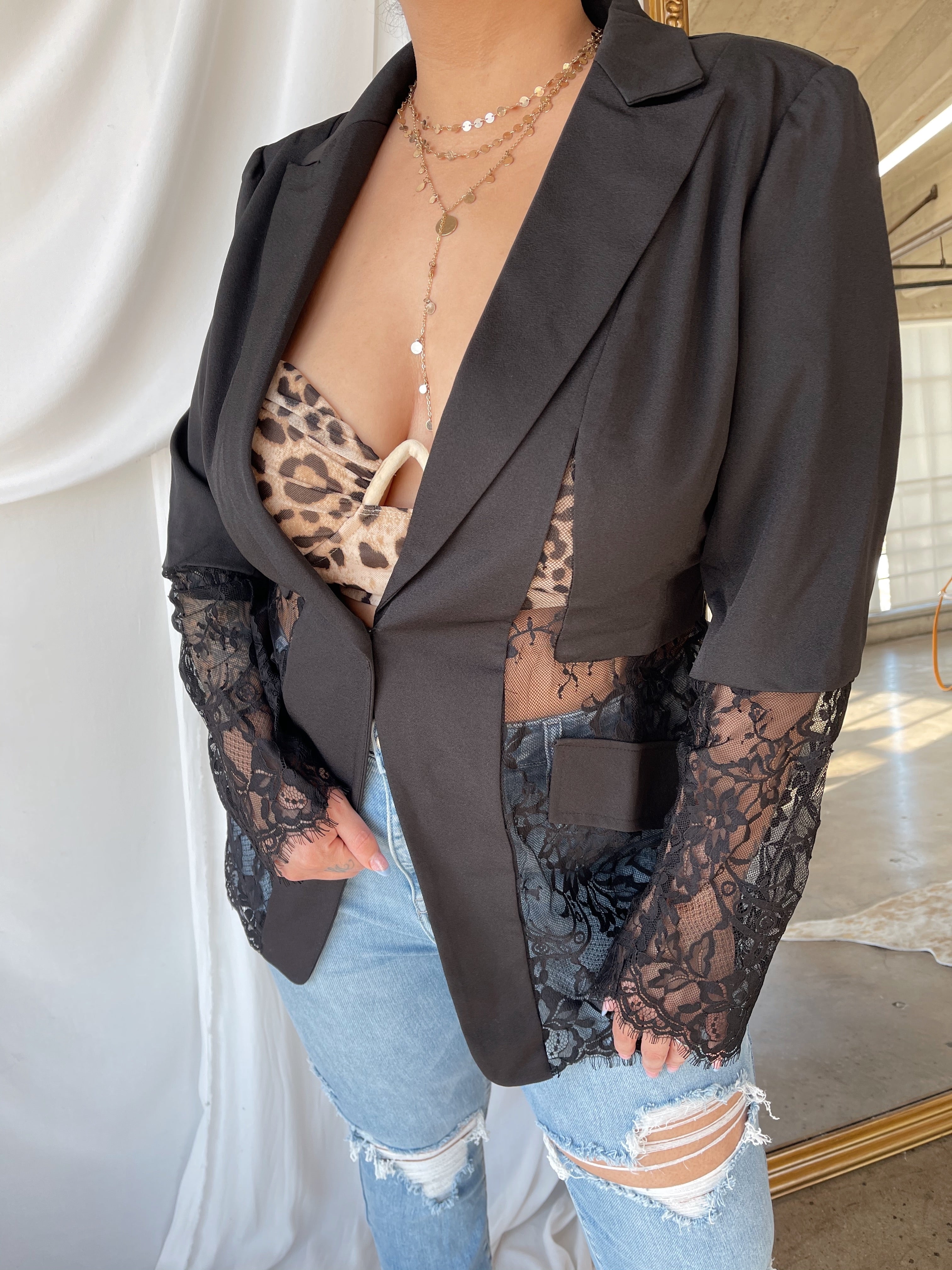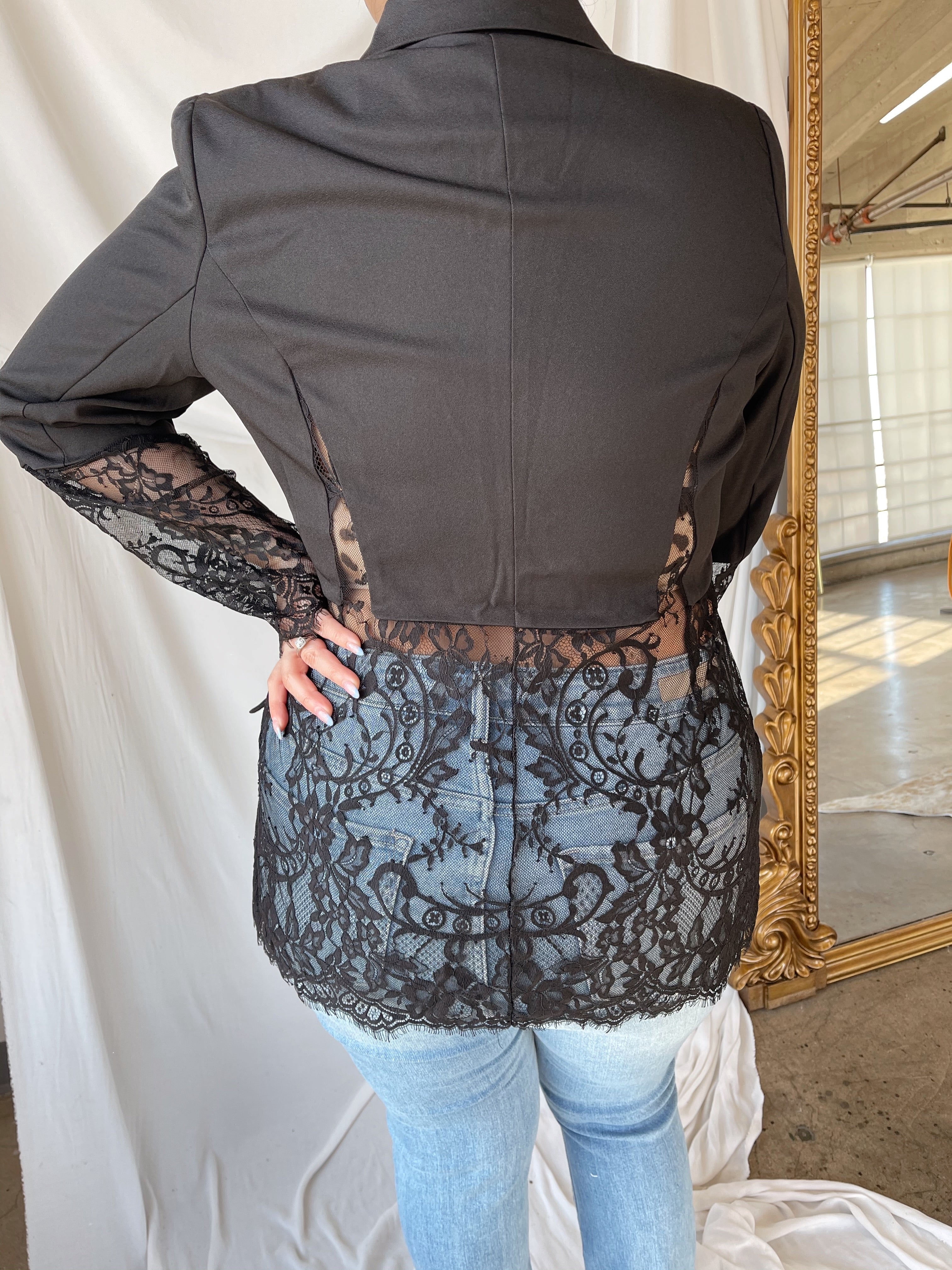 Spotlight item, the SCARLETT features a floral black lace. Two front faux pocket flaps and front  buttoning. The hem is scalloped for an extra touch. Doesn't offer stretch. Dress this up with a satin dress or dress is down with a tee and sneakers!