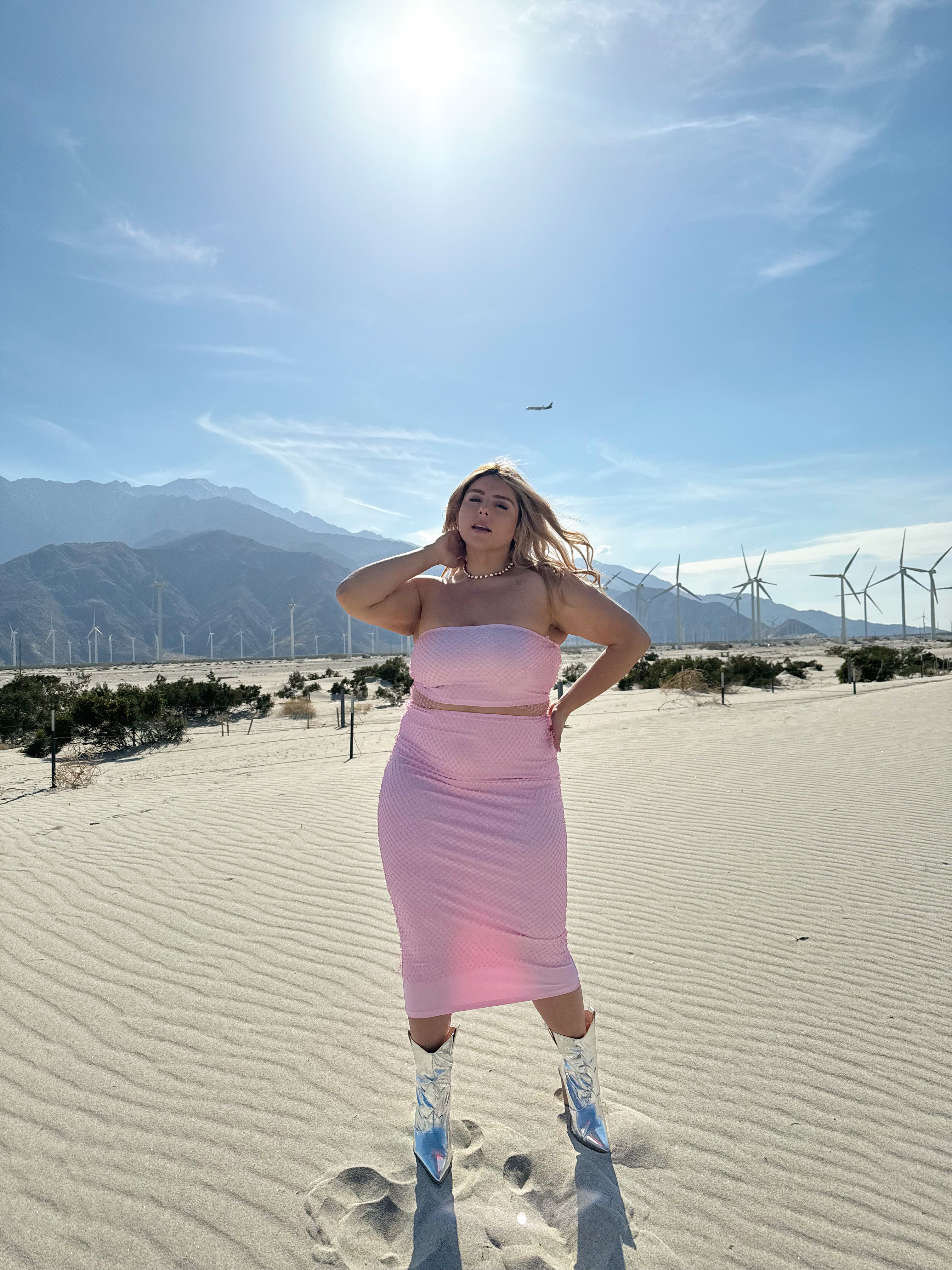 Let your star quality shine with the stunning STARLET Rhinestone Set! This stylish ensemble includes a midi skirt and bandeau top, perfect for any event. The flexible fabric ensures a comfortable and personalized fit. Wear it as a coordinated set or mix and match for unlimited fashion options. Be the star of any show in this glamorous and versatile set.