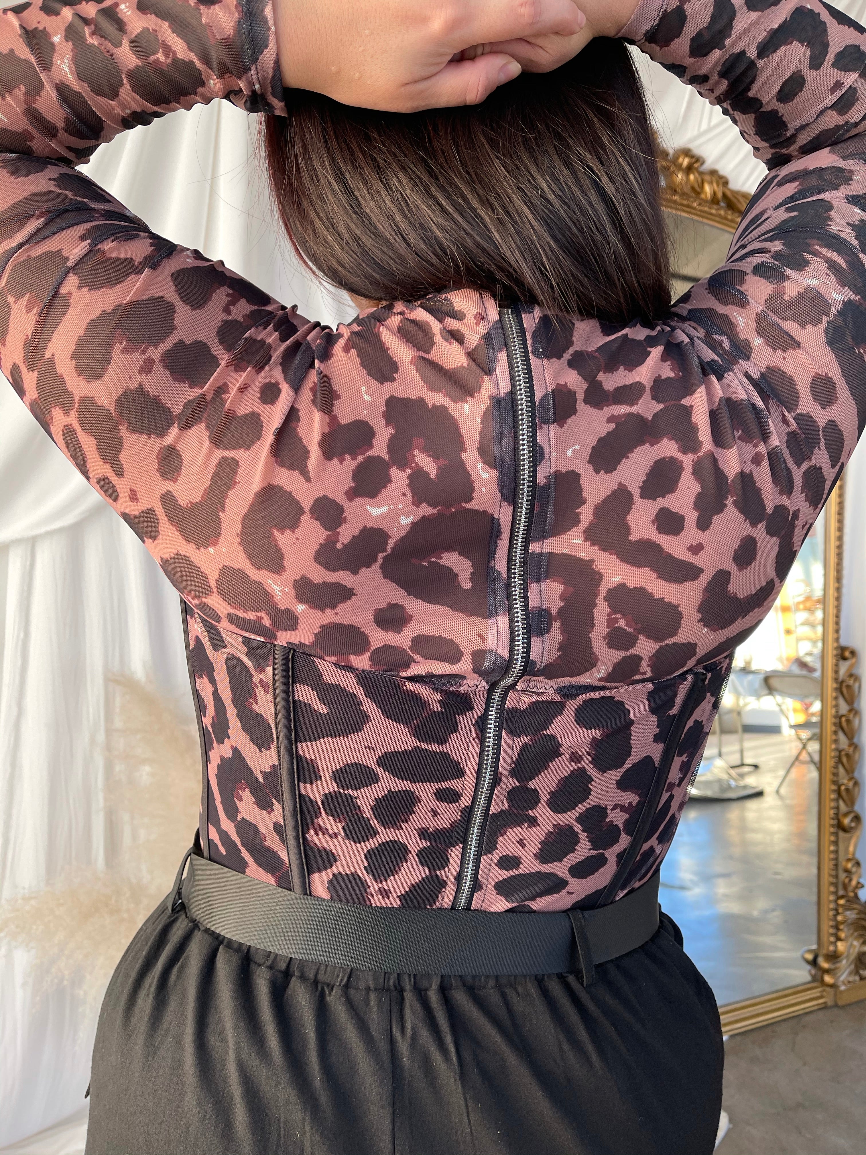 The ASHLEY is your new favorite top. Features sheer mesh fabric, mild boning for form fitting fit and long sleeves. The perfect top to make them stop and stare, a total MUST HAVE. Pair it with your fave jeans and sneakers for a street vibe or strappy heels for chic style.