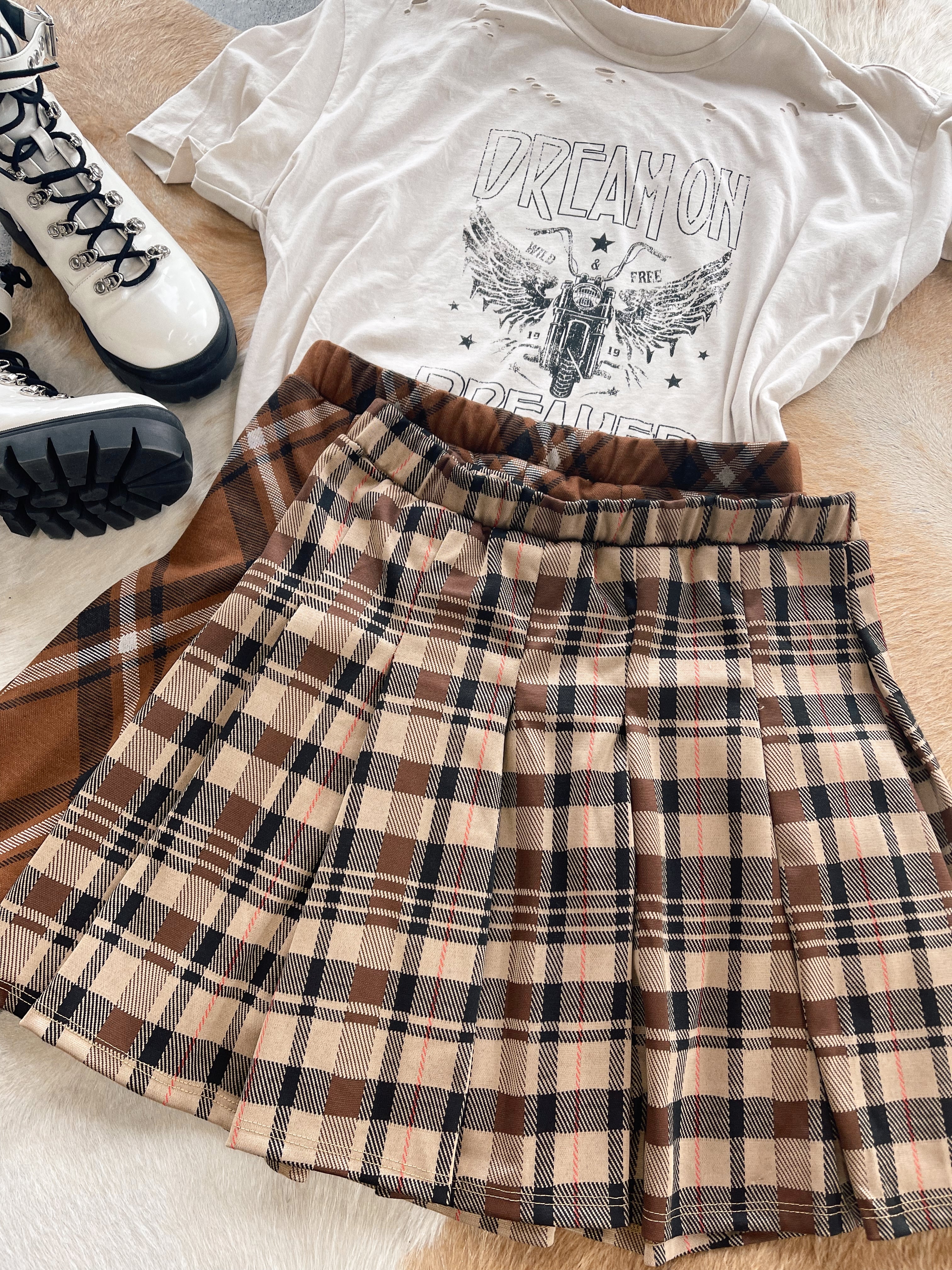 This mini plaid pleated skirt is perfect for fall, features an elastic waistband and which cotton blend fabric. Pair it with an oversized sweater and some sneakers or boots!