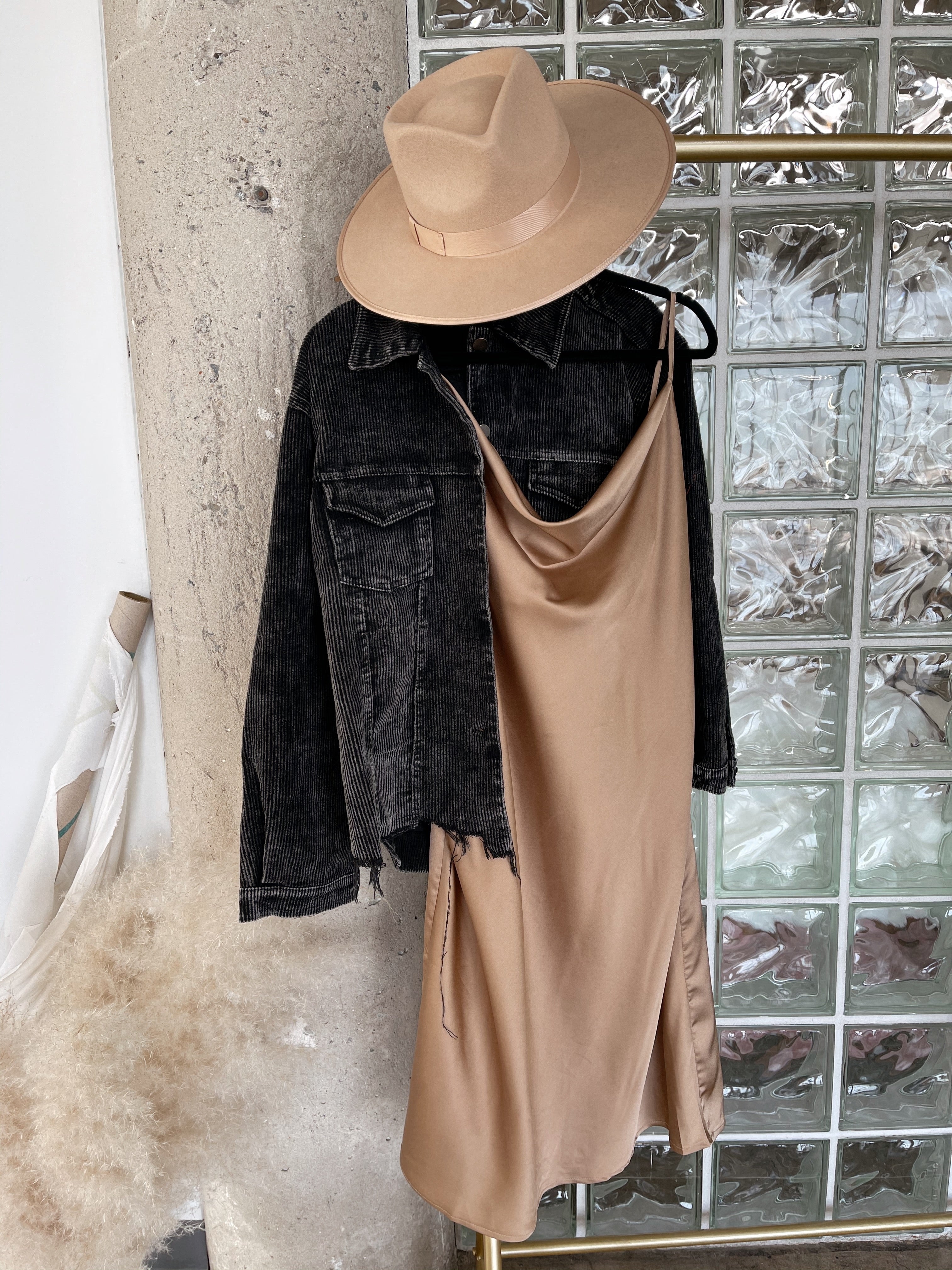 Appropriately named for our Style Crush CARLY Guisness. This gorgeous satin dress features a cowl neckline and thin adjustable shoulder straps. With its Body-conscious silhouette, it's the perfect outfit for any event. Style with a tee under and sneakers or throw on some heels for a night out!