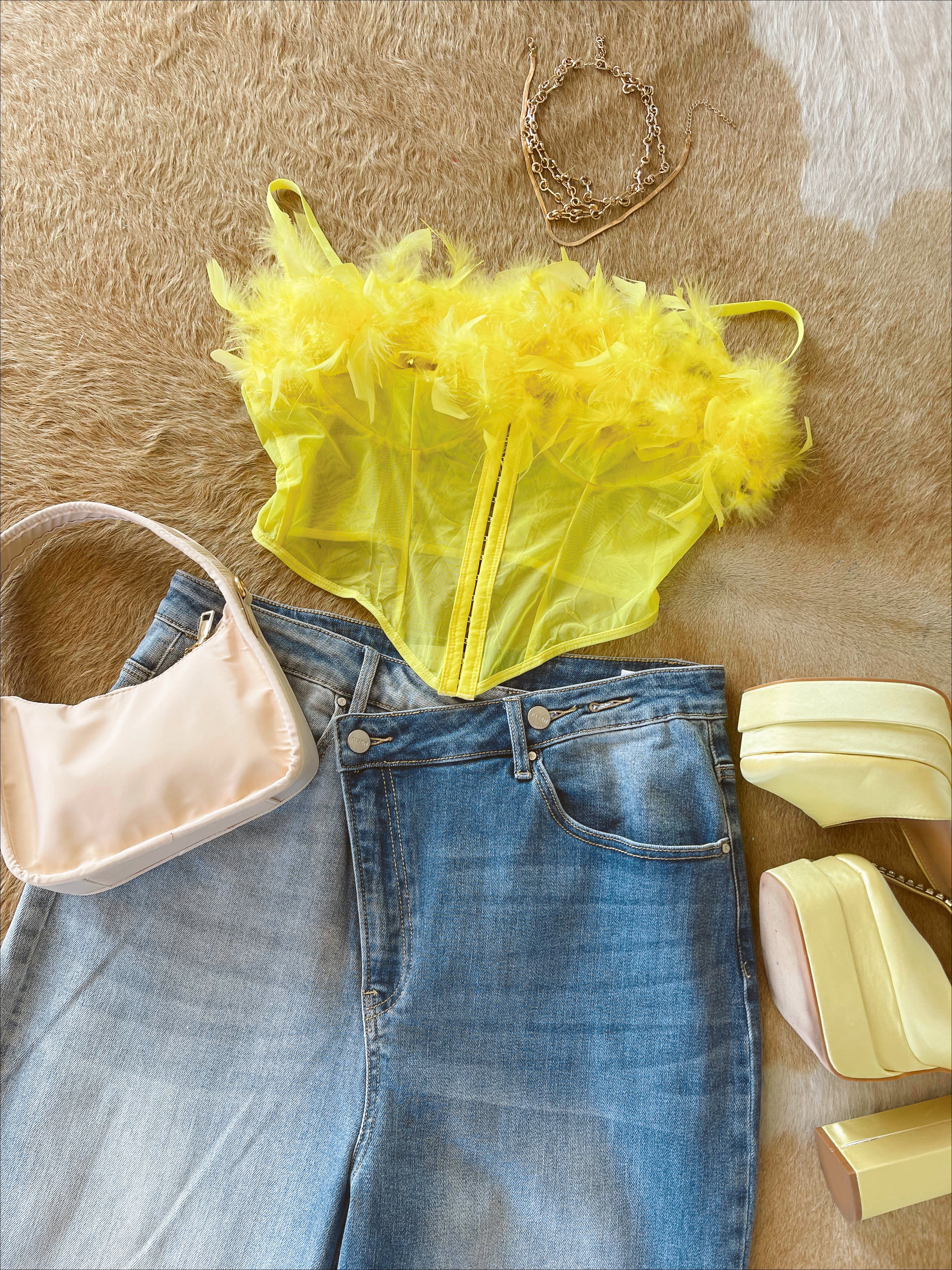DAPHNE Sheer Mesh Feathered Top