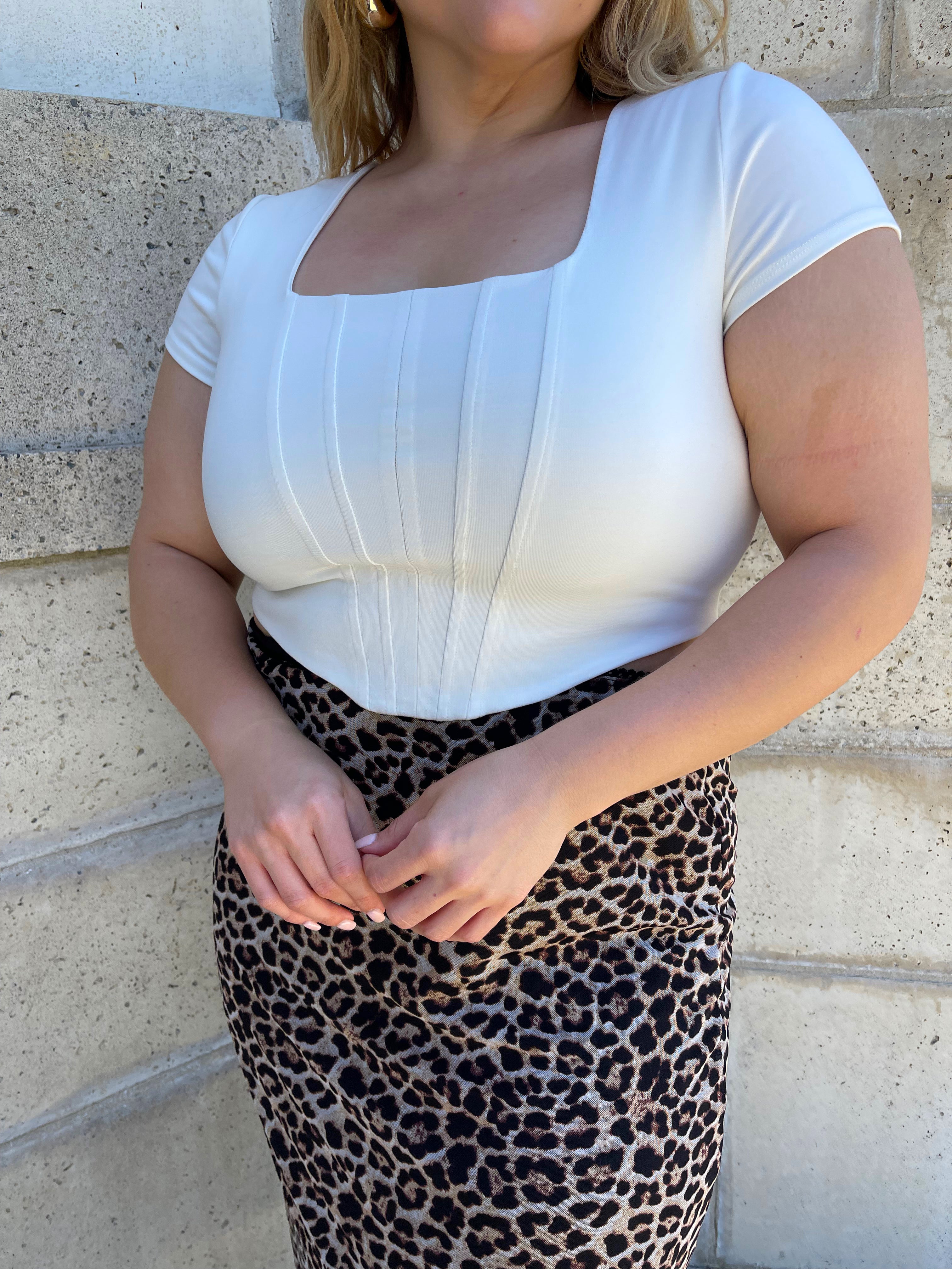 Look smokin' hot but stay comfortable with a ROSIE Corset Top! The luxe fabric gives you maximum comfort and lots of stretch, while square neck and corset detailing give you an ultra-flattering silhouette. No boning in the seams means comfy! Dress up or down, the ultimate basic.