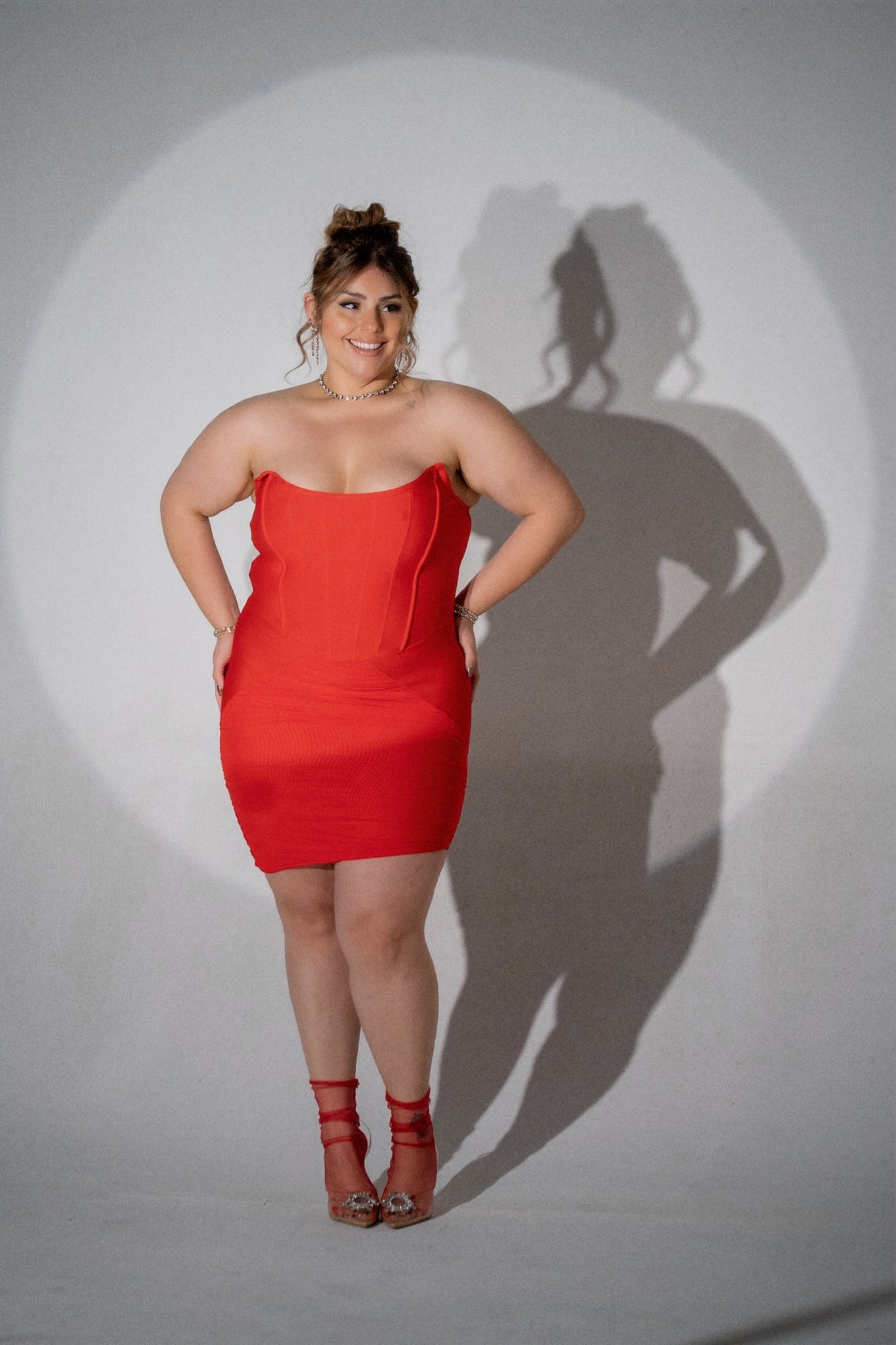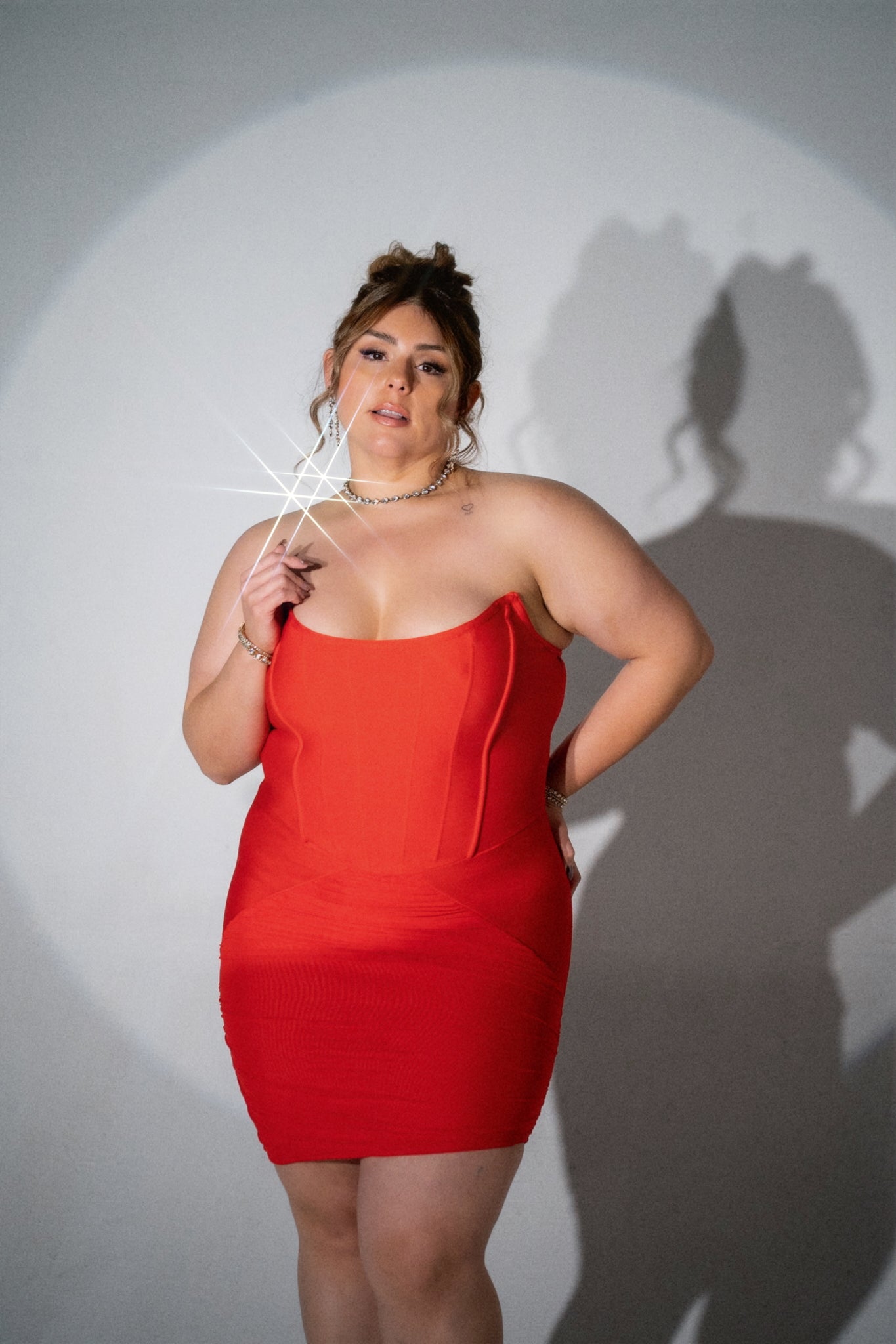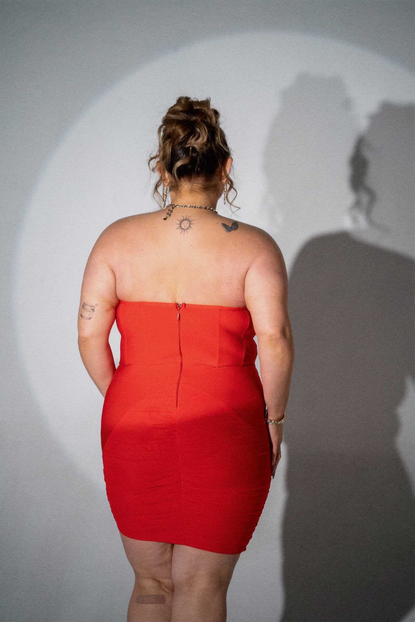 Spin into the spotlight with the LADY LUCK Bandage Mini Dress. This plus-size showstopper features premium stretchy bandage fabric, a sleek tube cut, and eye-catching ruching that sculpts and flatters. The functional zipper adds an unexpected twist to this playful essential. Comfortable enough for all-night wear, bold enough to steal the show—your new favorite dress has arrived.