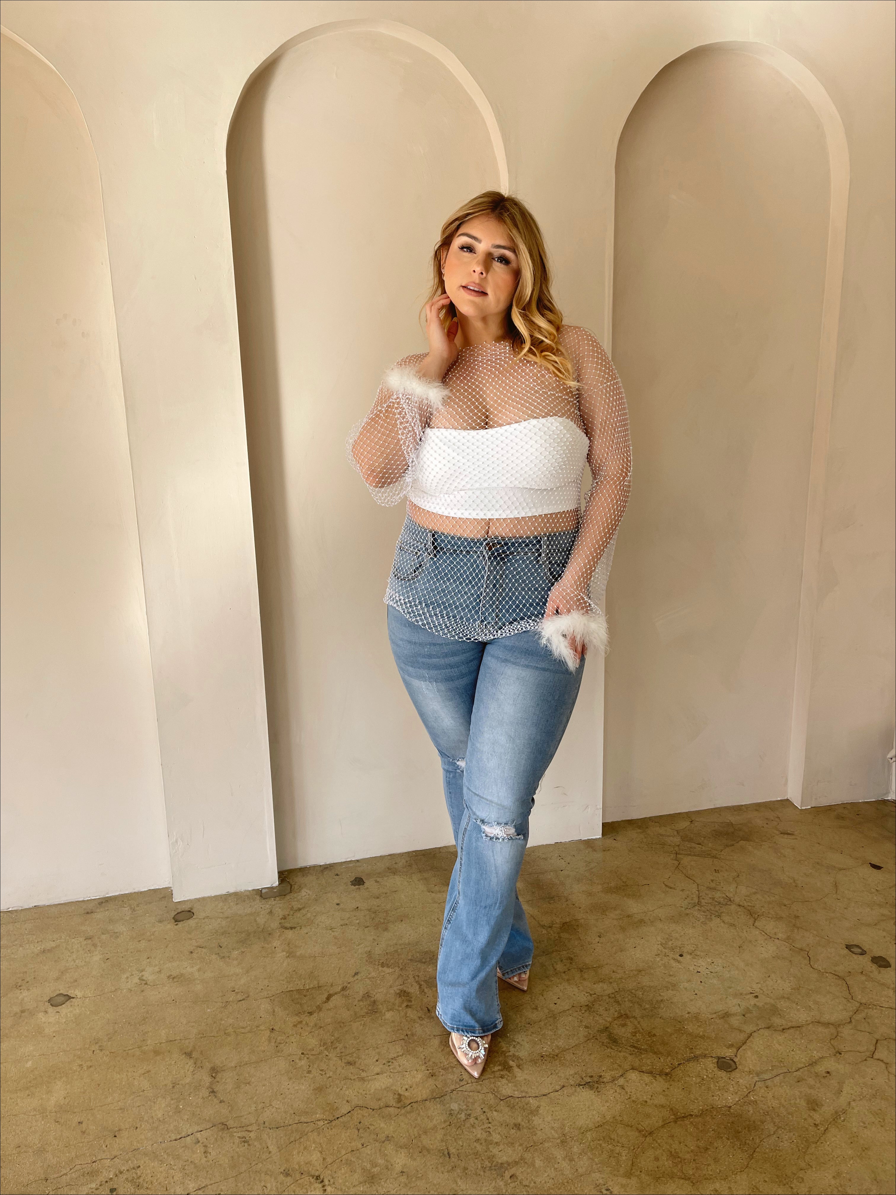 SHE SAID YES Feather Rhinestone Top