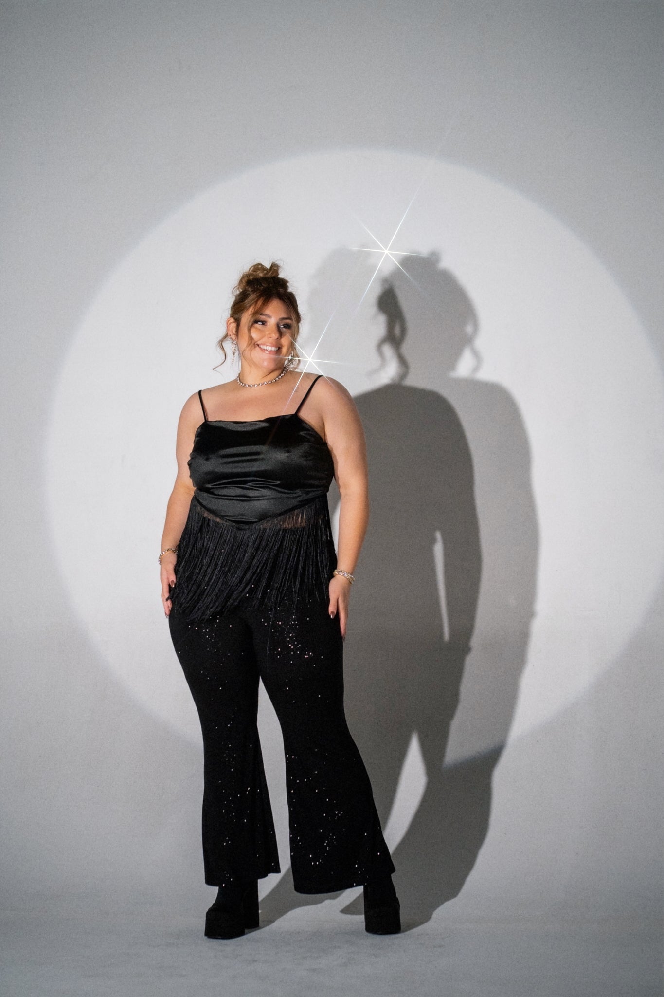 These SPADE Flare Pants deliver stretch, sparkle, and style. The flared silhouette pairs perfectly with subtle mesh details and just enough glitter to shine. Comfy enough to move in, fun enough to stand out.