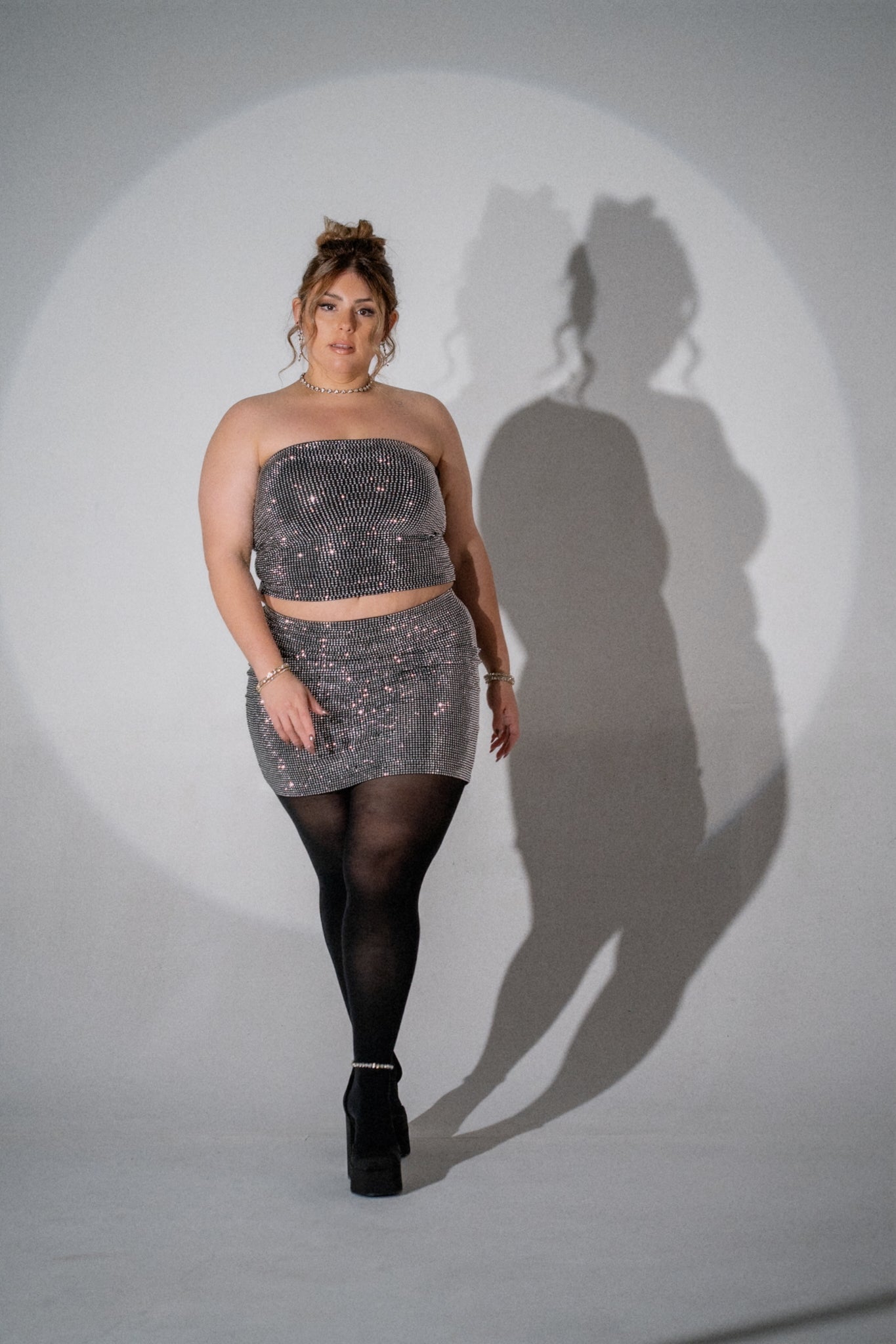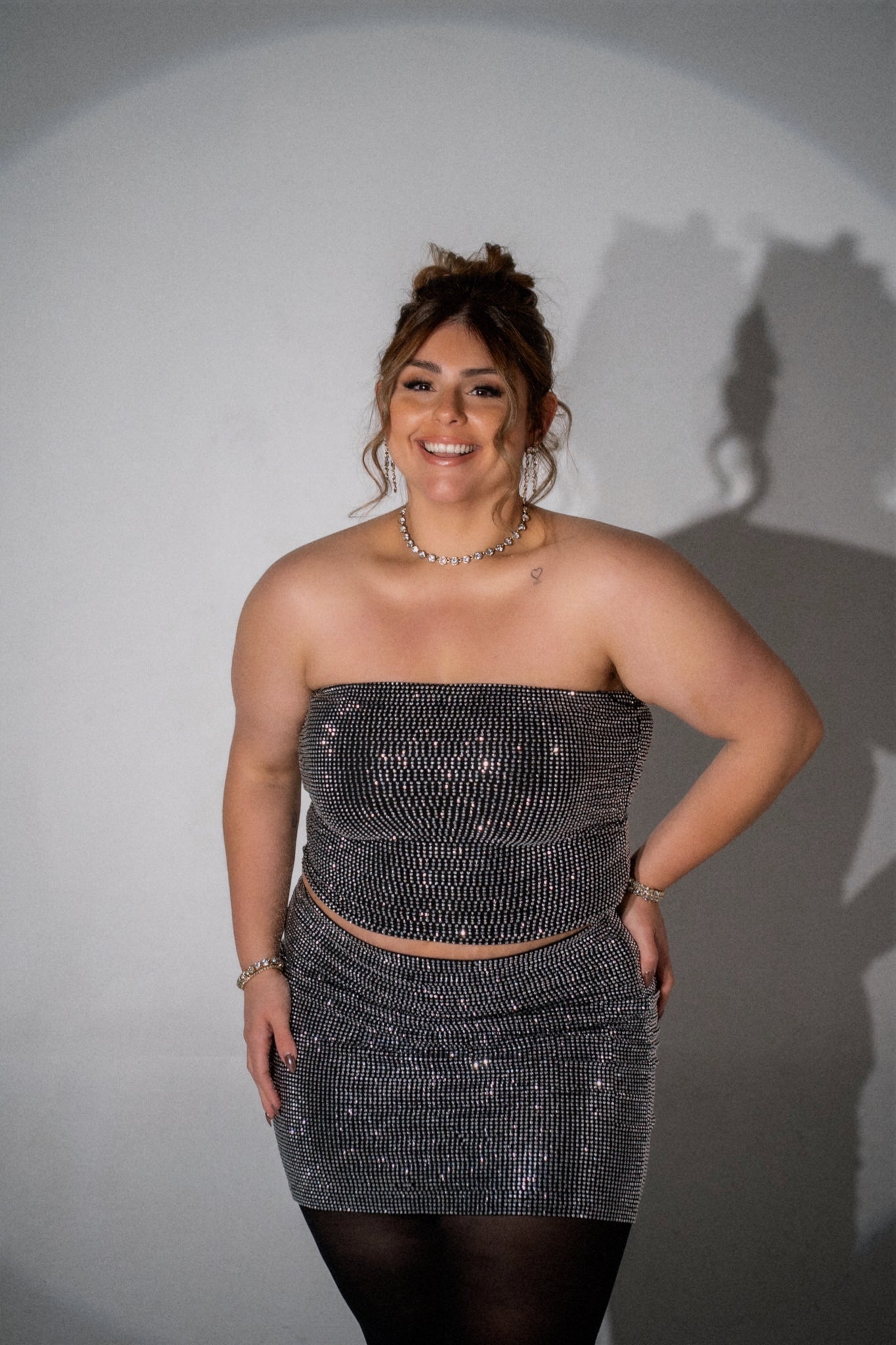 Get ready to dazzle in the STARDUST Rhinestone Set—a stretchy tube top and mini skirt combo that's basically a disco ball you can wear. Sparkle, move, and slay all night long without sacrificing comfort. Pure glitter magic.