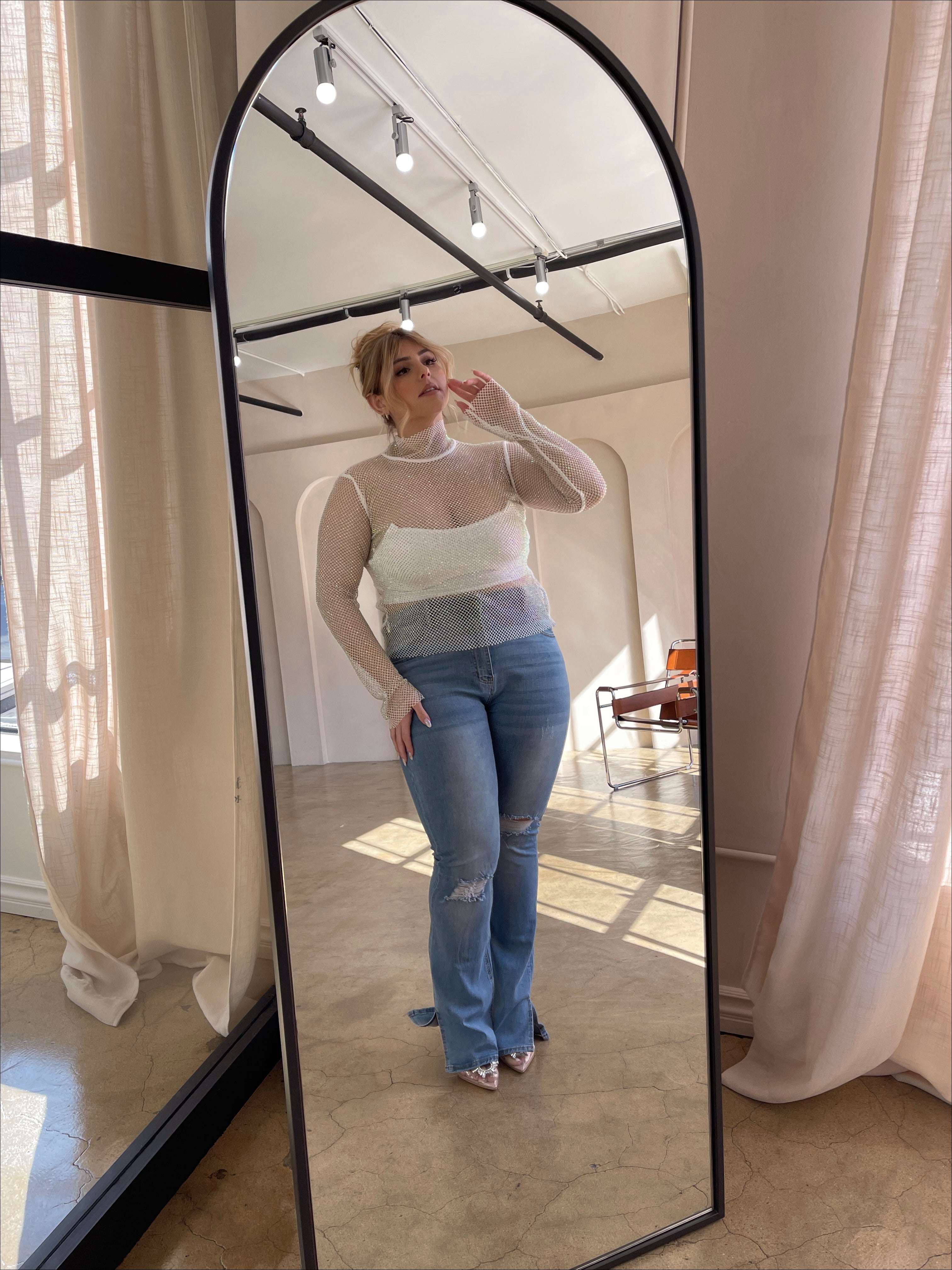 Get ready to say I DO, this top features a stretchy material fully sheer. Turtle neck detail with button closure. Style it with a dress or skirt, can be dressed up or down.